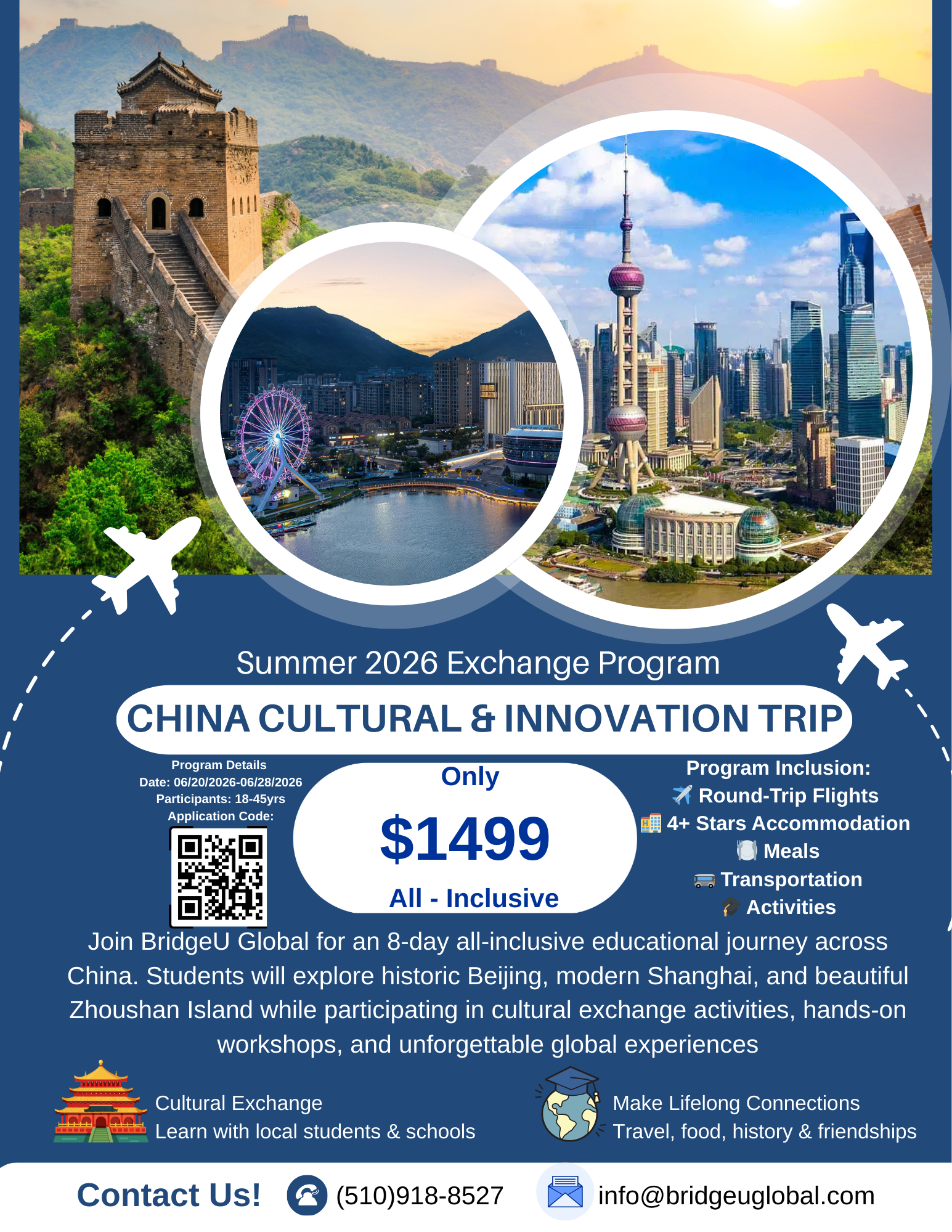 JUNE 2026 BridgeU Global Cultural ExchangeBeijing | Shanghai | Zhoushan 8 Day ItineraryTBD Exchange Program Application Form
